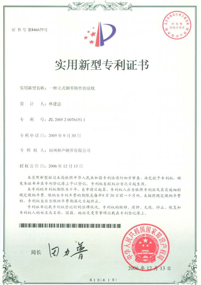 国内首创。在钢琴高音弦枕处精确铸出一线槽镶嵌直径为2.5毫米的不锈钢条为弦枕,琴弦与弦枕接触的精确度大大高于传统弦枕结构,使钢琴的音准更加稳定,音质更加纯净。(经典“R”系列、高端“G”系列产品配置)