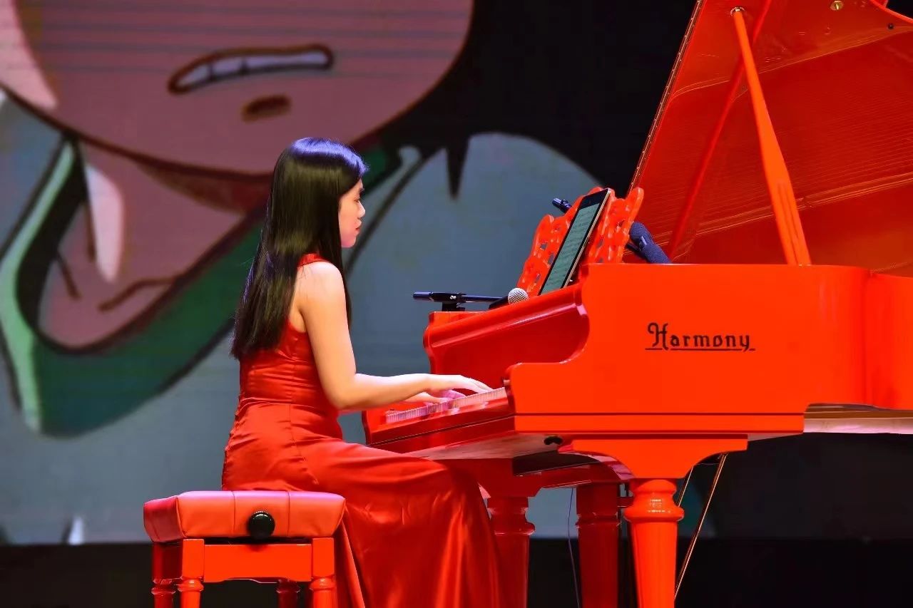 当拉开音乐会舞台的帷幕,在小演奏家们眼前闪烁出一抹红那就是“哈曼尼”HG-175R7“中国红”三角钢琴,古罗马风格、镂花谱架、弧形琴盖。在哈曼尼钢琴黑白键盘的灵动下,小演奏家们用铿锵有力的钢琴声音展现给电视台工作人员,清澈高雅的钢琴旋律,缭绕天际,所表现出的高品质音色、卓越的弹奏效果,让孩子们的演奏水平得以淋漓尽致的发挥受到了电视台工作人员的肯定和认可。